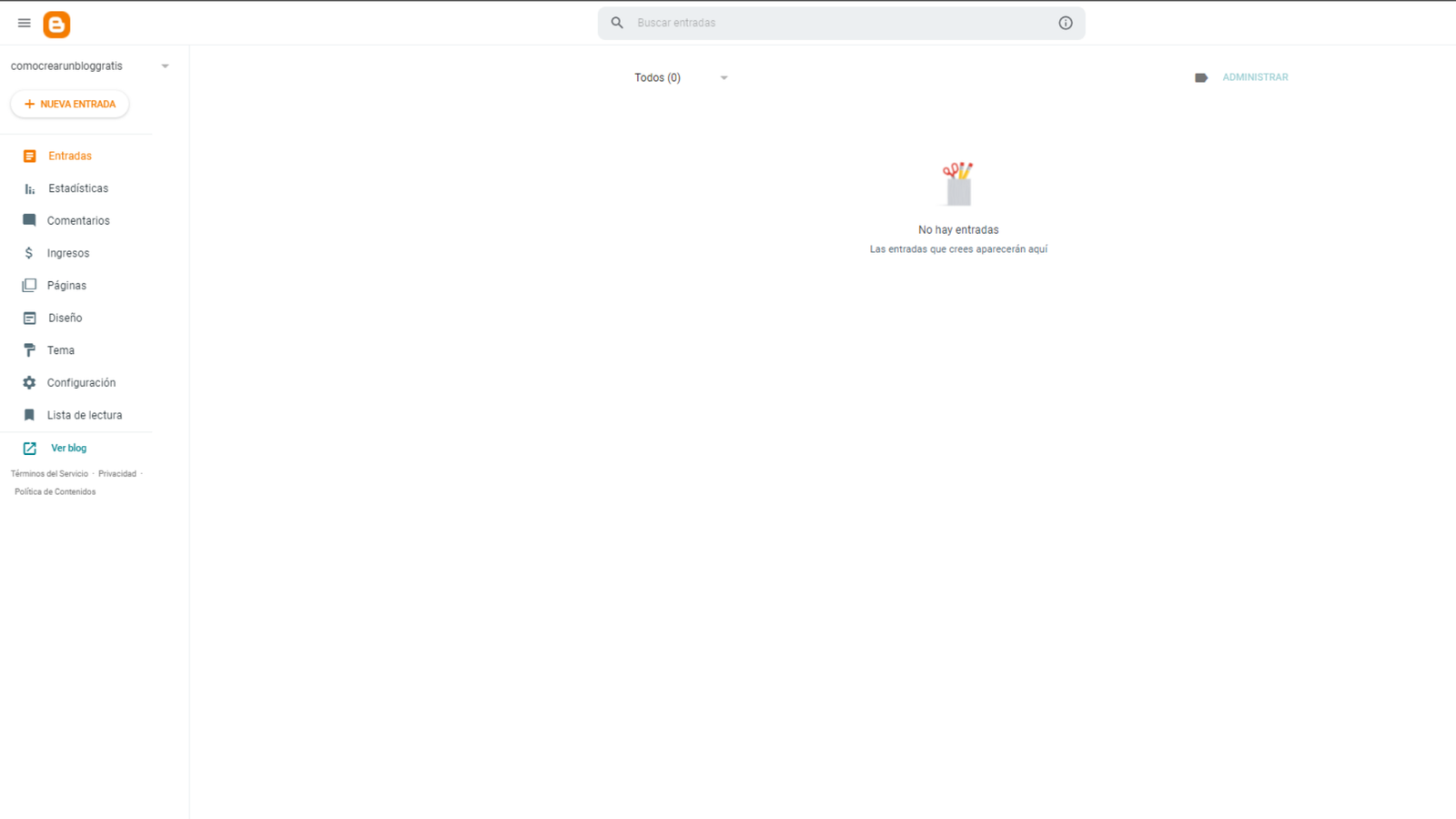 Si has seguido estos pasos ¡Ya tienes tu blog en blogger! Así es cómo te sale: